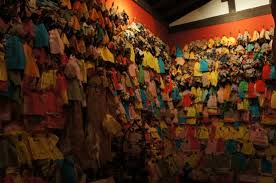 人形、人形・・・。人々の思いの形なんでしょうが、なぜか壁が赤く、